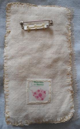 Everything I've used for this brooch, apart from the brooch pin and my label is vintage. I've used fabric from chair backs, the edge of a tablecloth, lace and tatting, buttons and fabric scraps. I've used vintage mercerised crochet thread, thread for mending stockings and artificial silk thread.